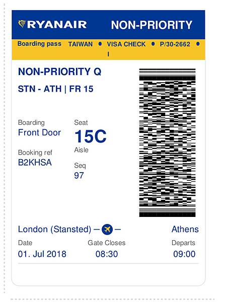 一早就搭上8:30從LondonStansted (STN)機場往雅典的飛機。