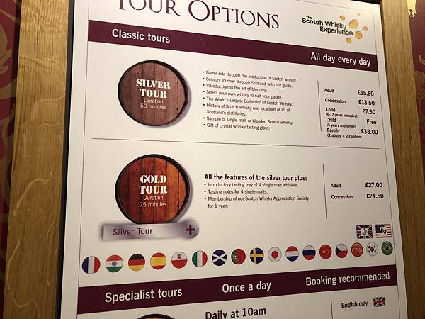 4點20分,我們來到威士忌博物館,可以有不同的Tour選擇,我們選了50分鐘的基礎款。