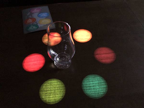 桌上會投射出顏色,可以按照顏色去選自己想要哪一種威士忌。
