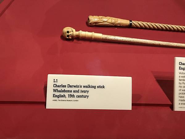 進化論者達爾文的象牙手杖,雖然跟展覽主題沒什麼具體連結,但蠻有意思的,是Science Museum的藏品。