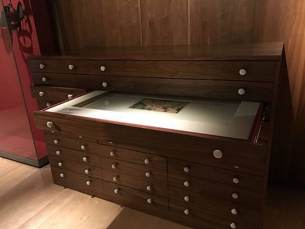 有一些畫作因為擔心燈光太強被破壞,所以把他收在抽屜裡,讓觀眾拉開後可以推回去,也是一個不錯的設計。而更多Henry所買下的其他畫作,則是收在Wellcome圖書館裡。