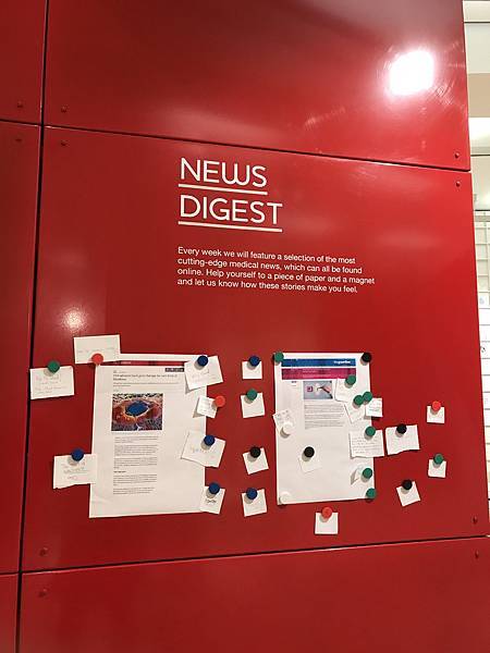 新聞牆,每週會選一個有趣的醫學新聞貼上去,觀眾可以留言寫下感想。