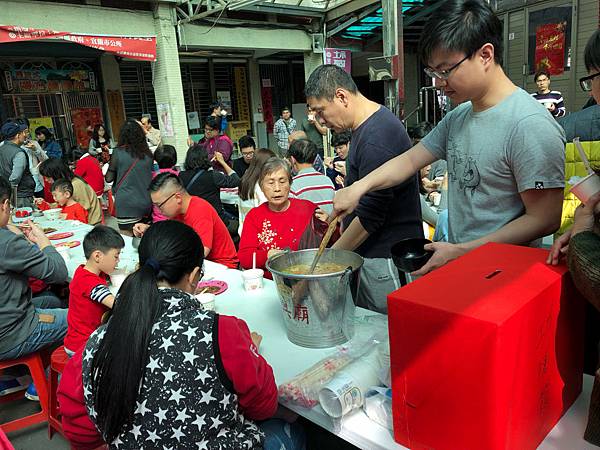 大家隨意坐下來吃,也會遇到朋友跟鄰居,互打招呼跟閒聊,口耳相傳不同廟的粥宛若米其林評比,成為過年社交的另一個場景。