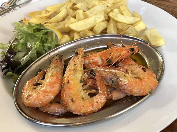 友人點的,蒜香烤大蝦,加了chips跟沙拉分量很足。