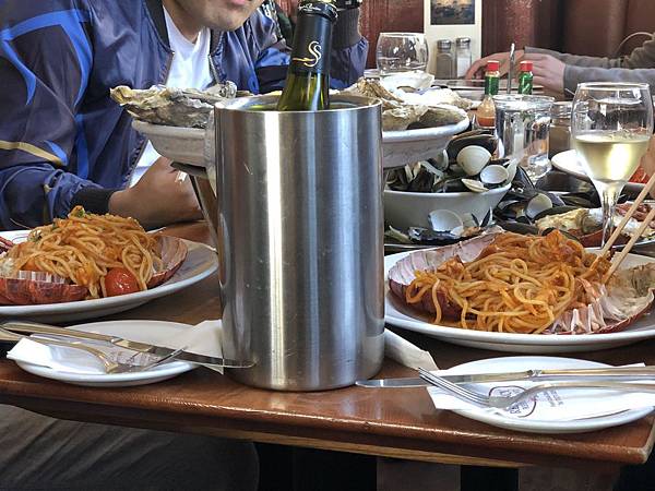 不過隔壁桌很瘋狂的點了超大盤龍蝦麵跟一堆生蠔跟蛤蠣。